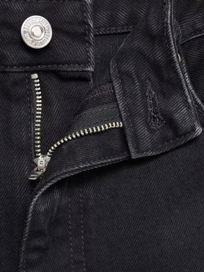 100% Cotton, Mom-fit, Standard design, Straight design, Loops on the waist, Five pockets, Zip and one button fastening, High waist, Long design.
