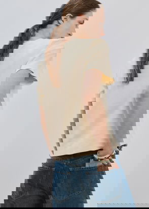Straight design. Floral print. Rounded neck. Short sleeve.
