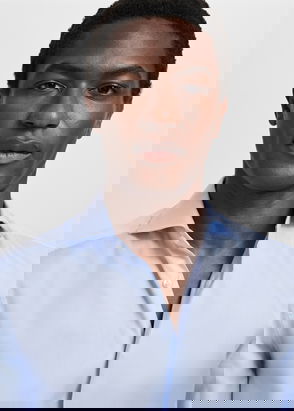 Casual line, Slim fit, 100% linen, Embroidered polka-dots, Classic collar, Long sleeve with buttoned cuffs, Button fastening on the front section.