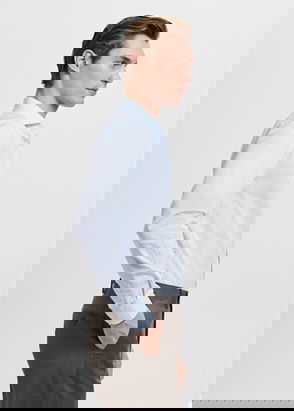 Casual line, 100% linen, Slim fit, Plain fabric, Classic collar, Buttoned collar, Long buttoned sleeve, Button fastening on the front section.