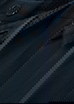 Slim fit. Strap closure with button. Belt loops. Interior elastic waistband on both sides for a comfortable and adaptable fit. Double button and zip closure. Two side pockets. Two welt pockets at the back.