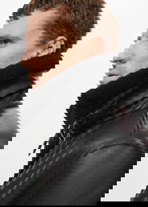 Casual line, Short design, 100% suede leather, Classic collar, Long buttoned sleeve, Printed patch-pocket on the chest, Pocket with flap on the front section, Two side pockets, Button fastening on the front section, Inner lining.