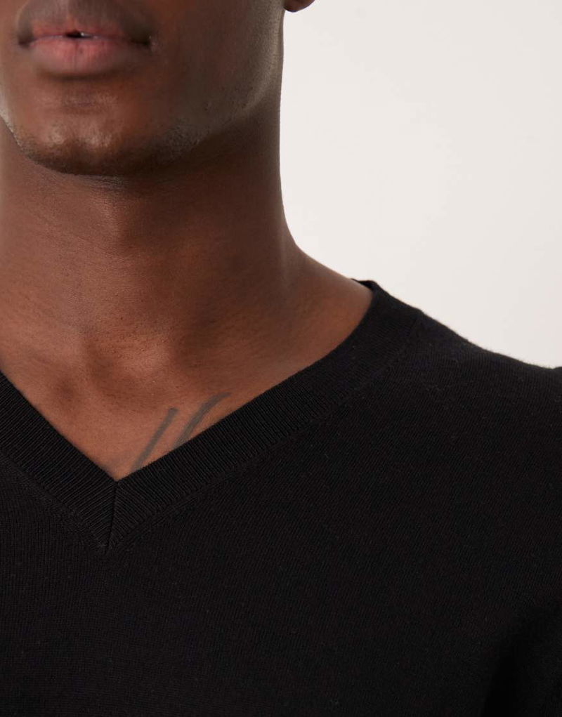 100% Wool V-neck Lightweight Knitted Top In Black