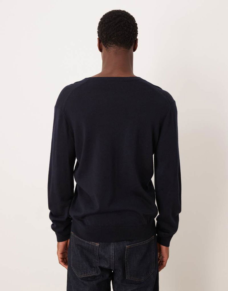 100% Wool V-neck Lightweight Knitted Top In Navy