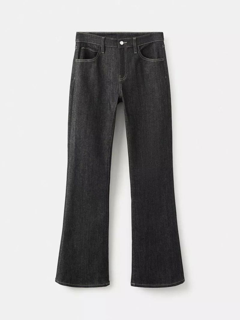 70s Style Mid Rise Bell-Shaped Jeans, Black