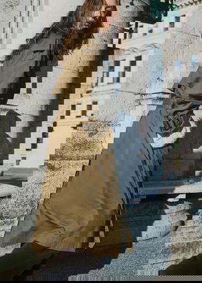 Drape yourself in effortless style with Mango's long, oversized coat crafted from a soft lyocell-blend fabric. Featuring a sophisticated lapel-collar V-neck with a notch, double button fastening, and a comfortable inner lining. The long sleeves with additional loops at the waist allow for the included removable belt to cinch the silhouette. Finished with a practical back-slit hem for ease of movement.
