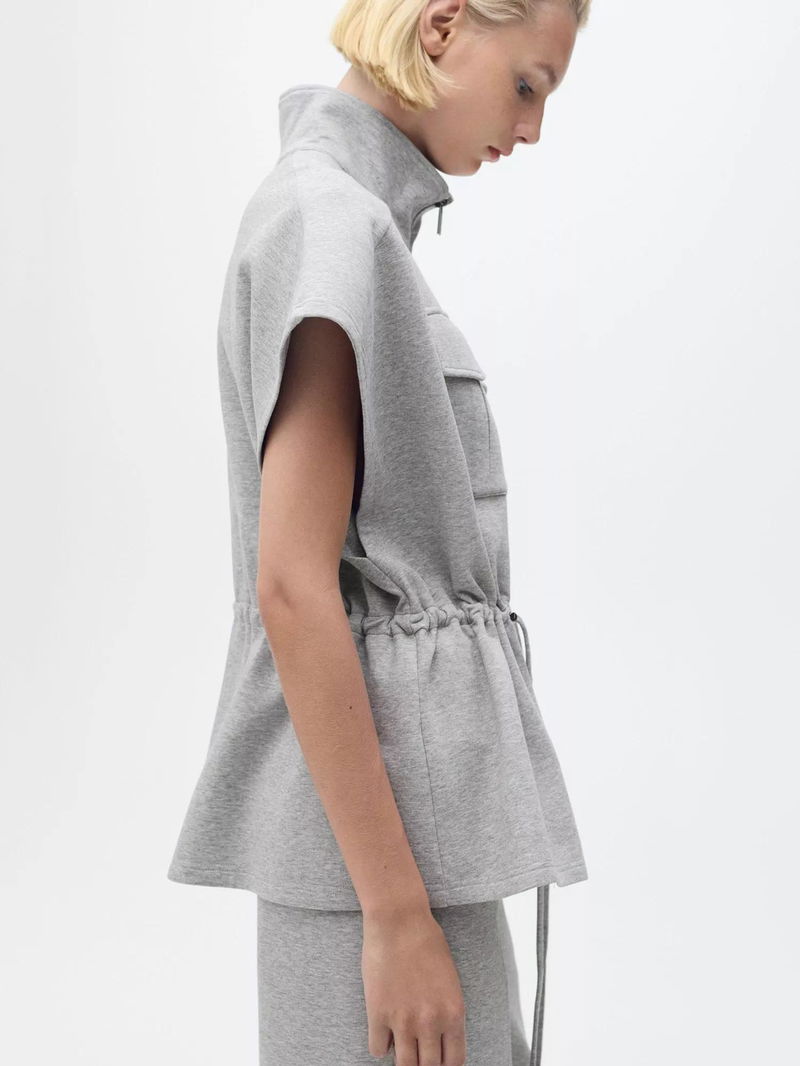 Amber Cotton Blend Sleeveless Funnel Neck Gilet
