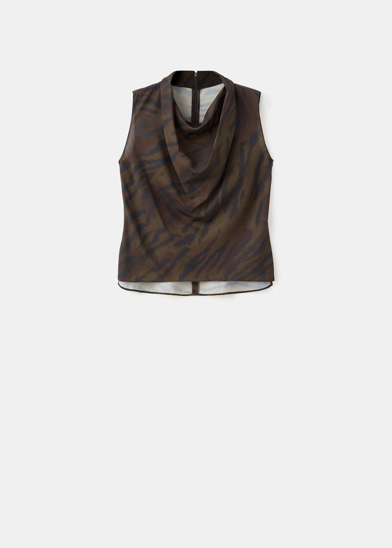 Animal-print Blouse With Draped Collar