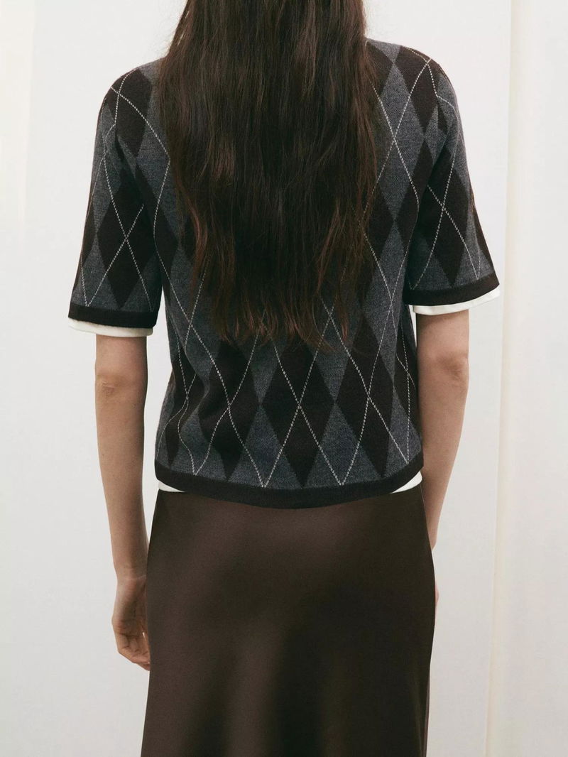 Argyle Short Sleeve Jumper, Grey