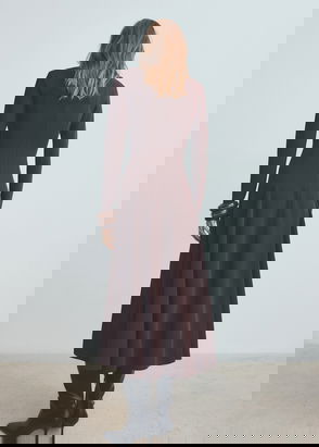 With a stylish asymmetric neckline and long fitted sleeves, this blouson bodice midi dress from Mango is the epitome of sheer minimalism.