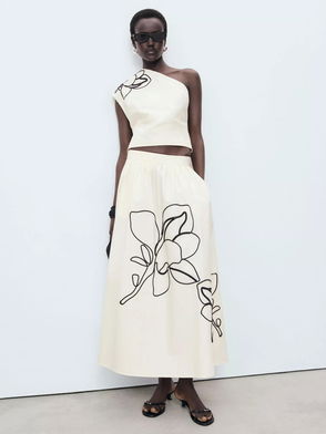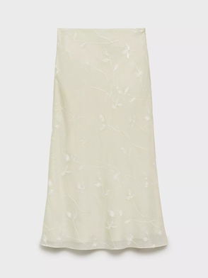 Ariel Floral Side Slit Midi Skirt, Natural White