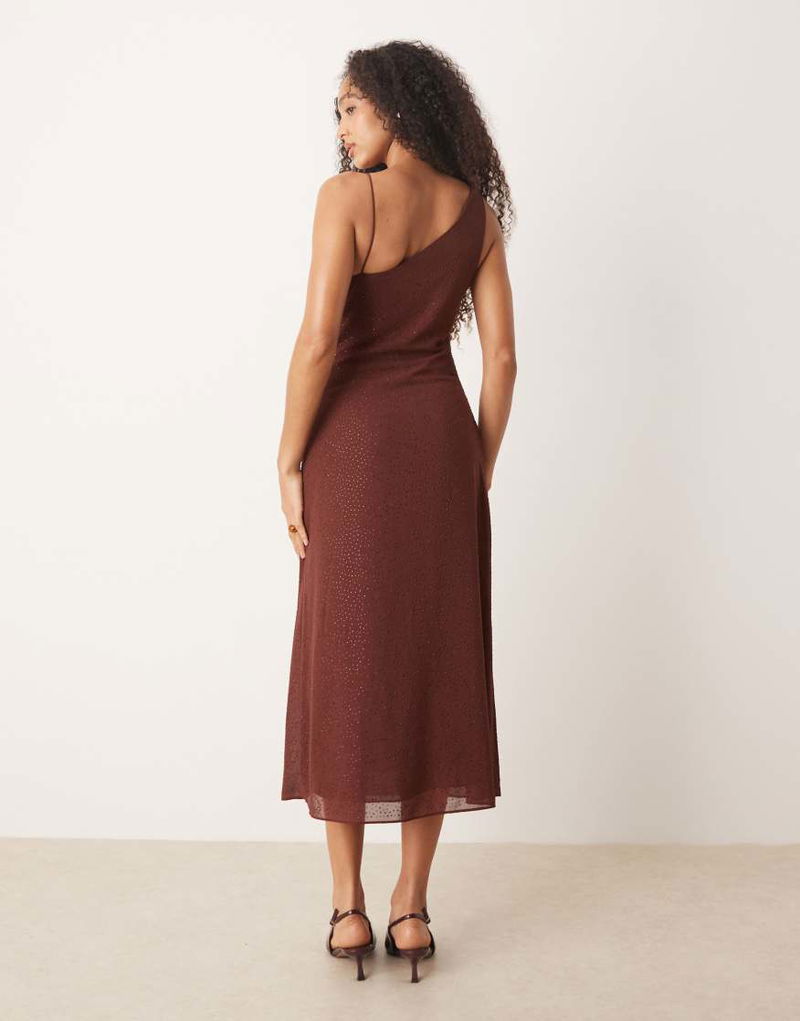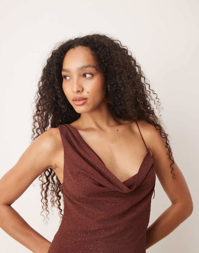 Asymmetric Cowl Neck Maxi Dress With Hotfix In Brown