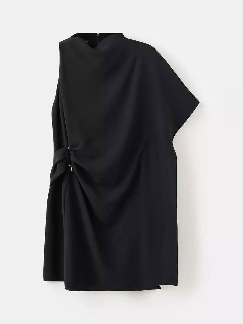 Asymmetric Drape Mini Dress, Black