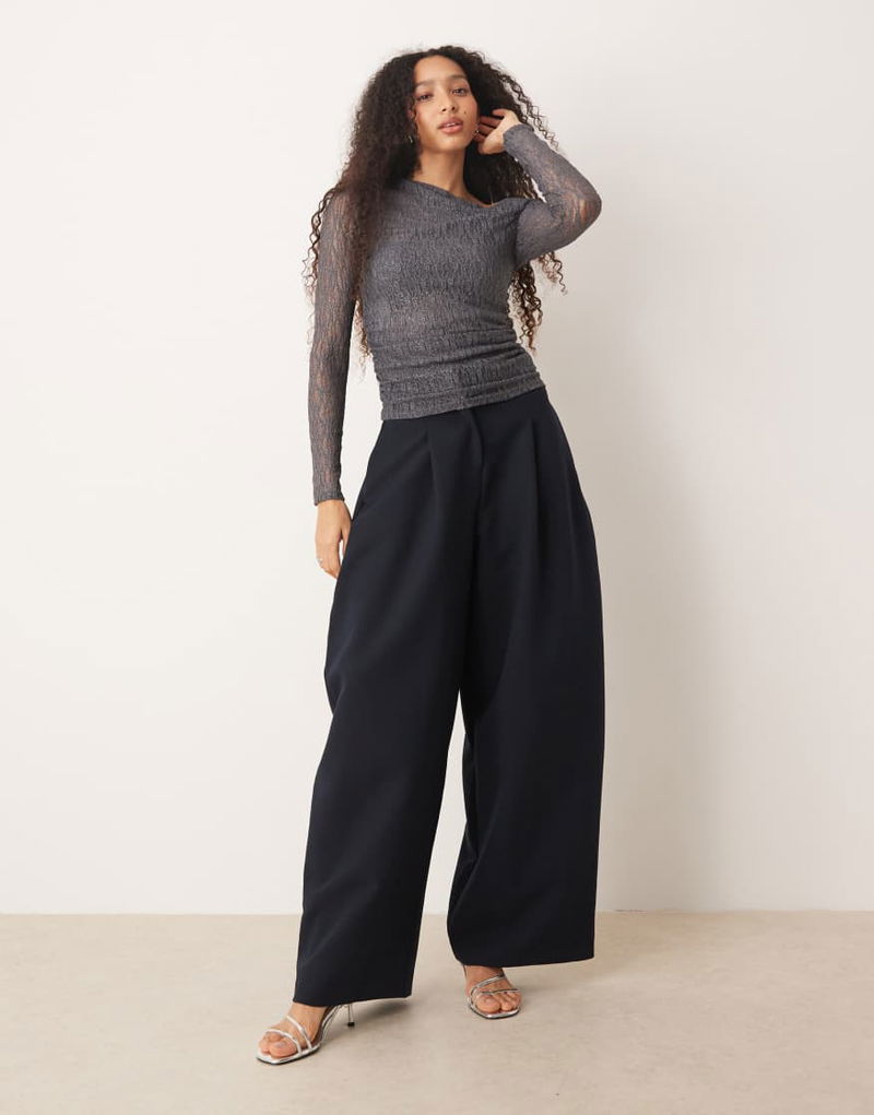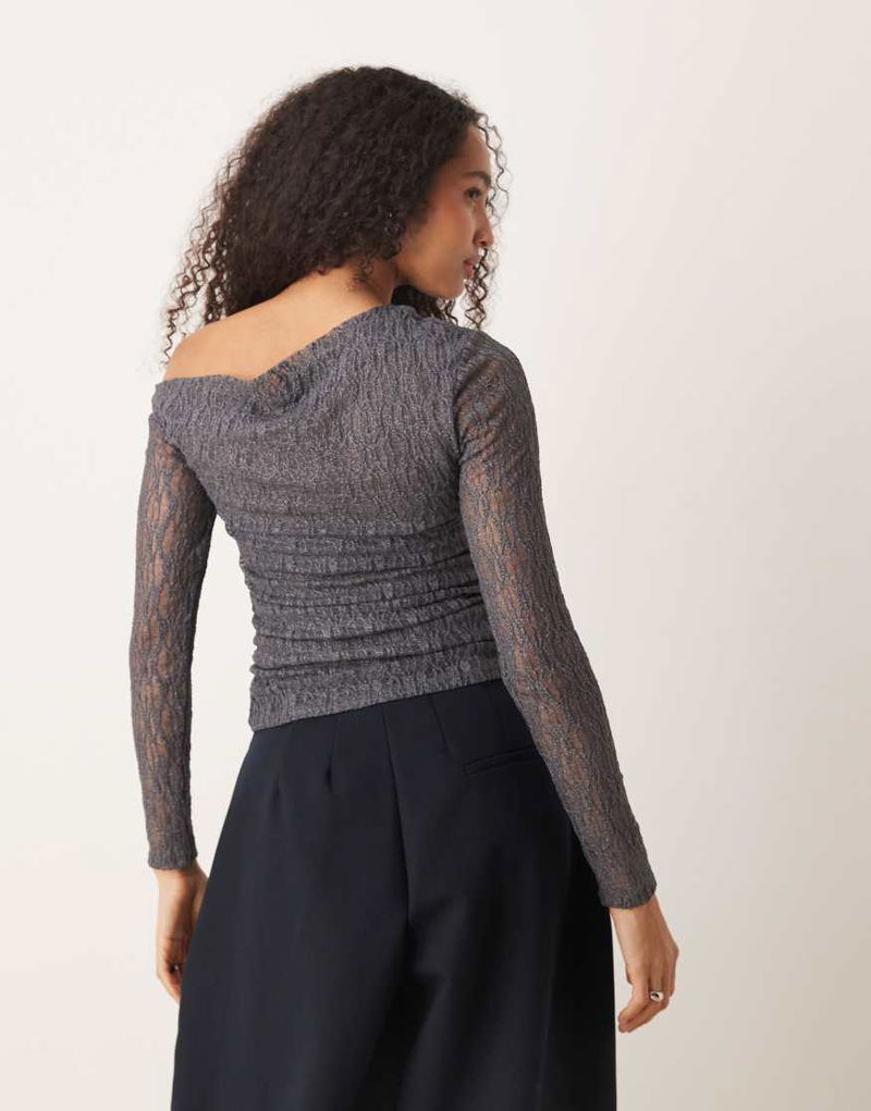Asymmetric Long Sleeve Lace Top In Grey