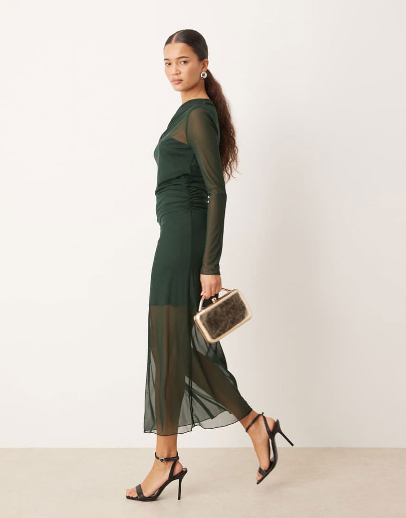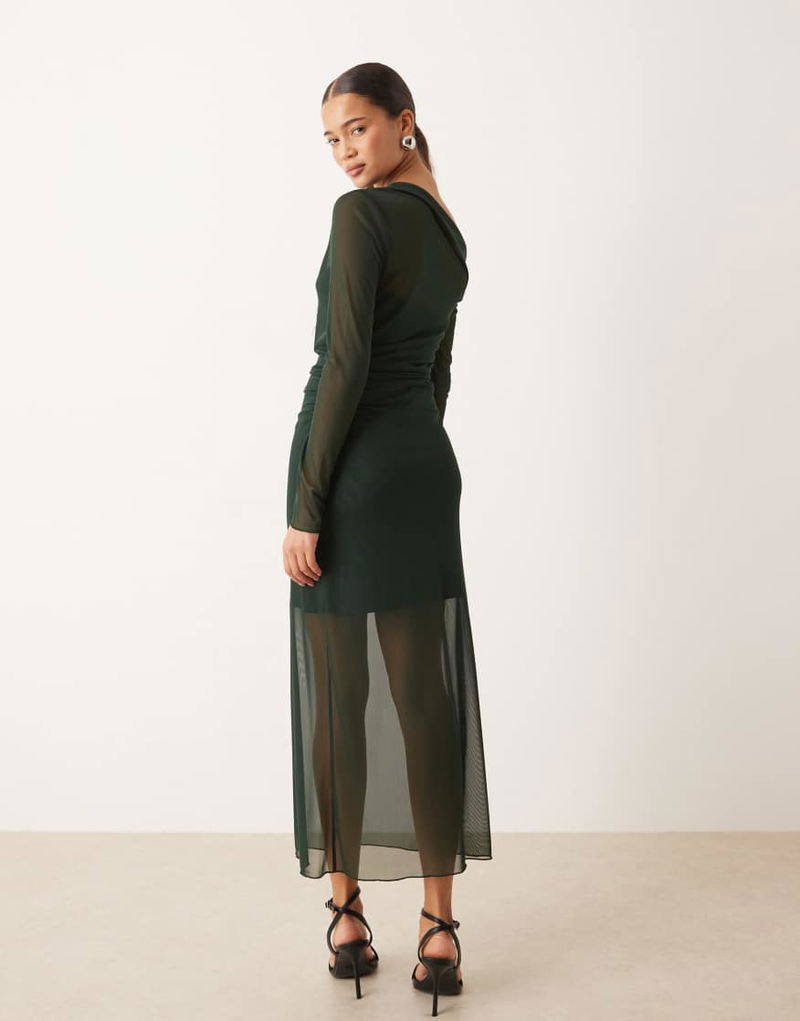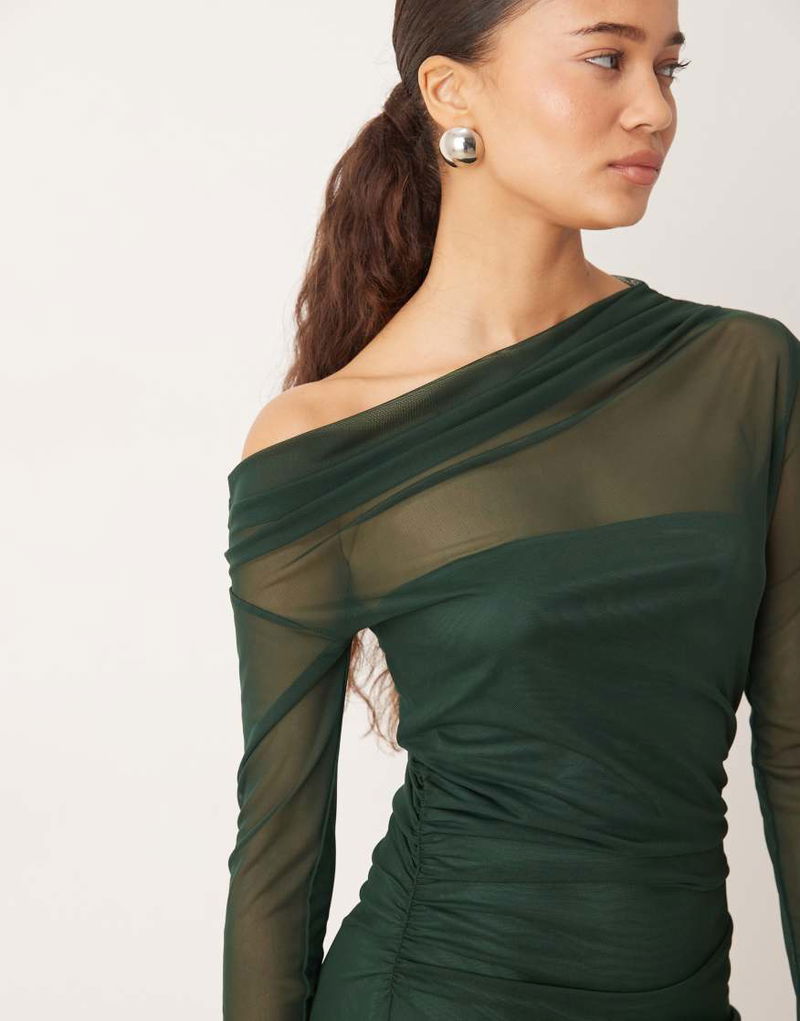 Asymmetric Long Sleeve Maxi Dress In Forest Green