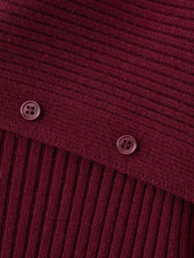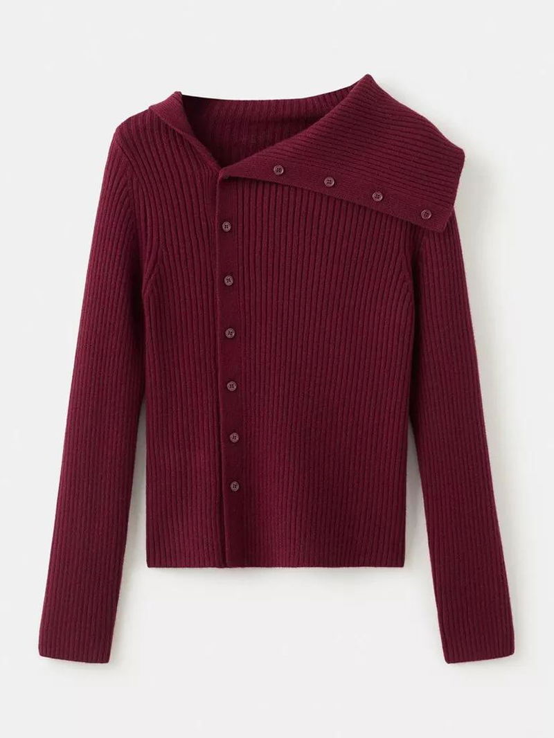Asymmetric Neck Ribbed Cardigan, Red