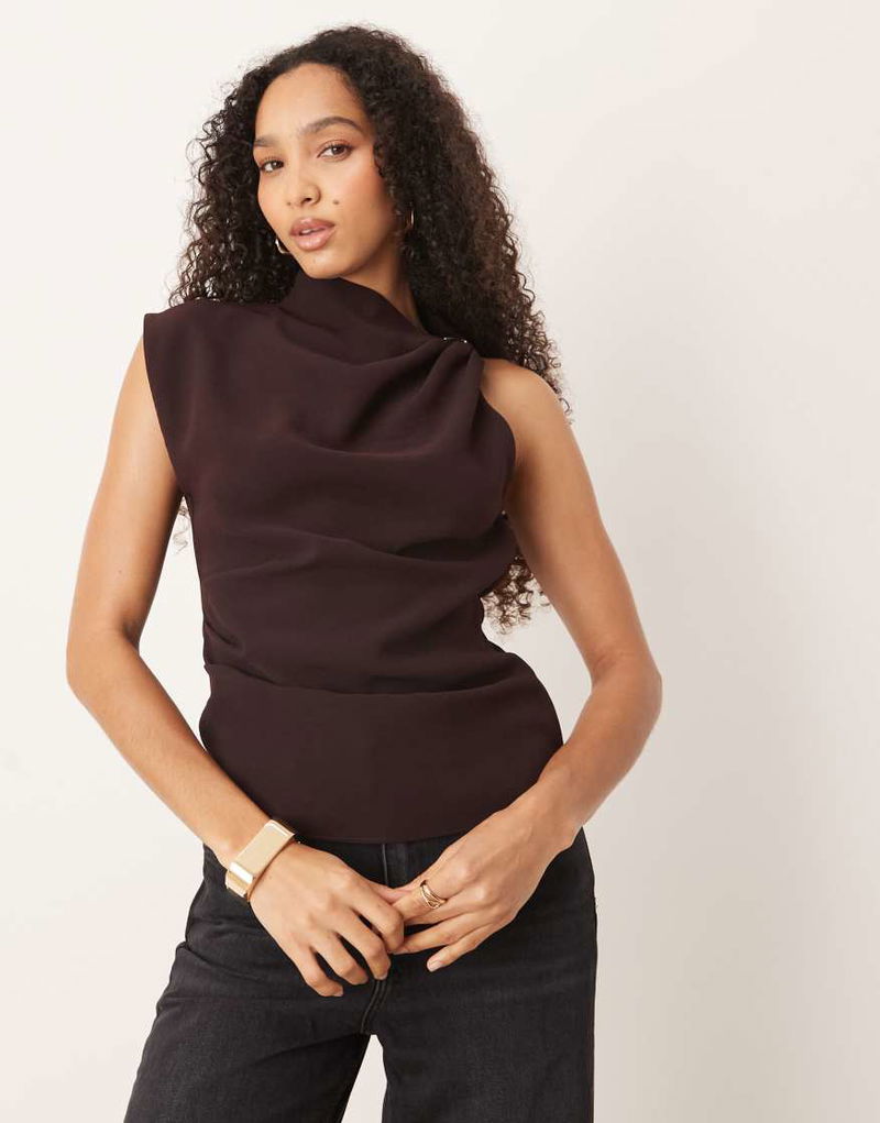 Asymmetric Sleeveless Top With Hardware Detail In Brown
