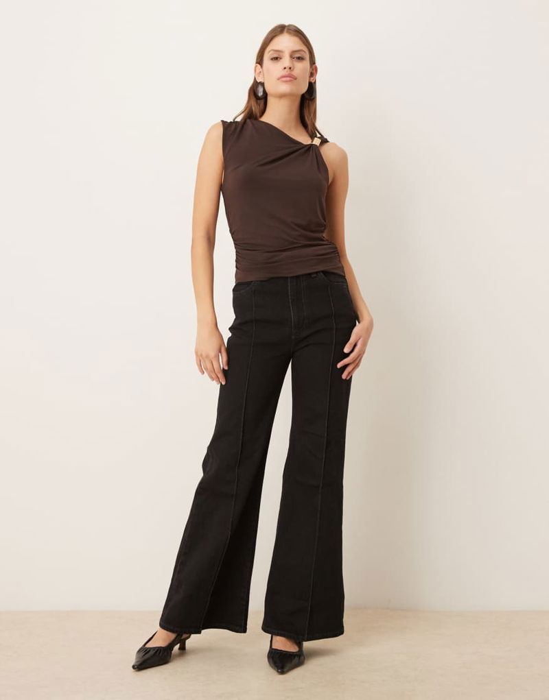 Asymmetric Sleeveless Top With Hardware Detail In Brown