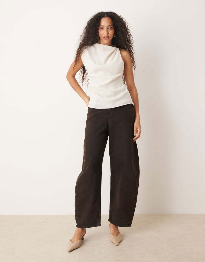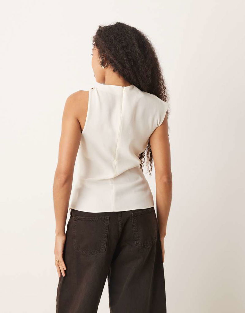 Asymmetric Sleeveless Top With Hardware Detail In Cream