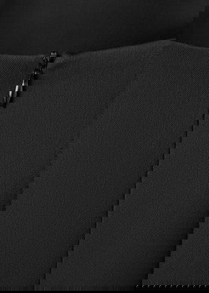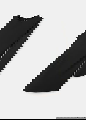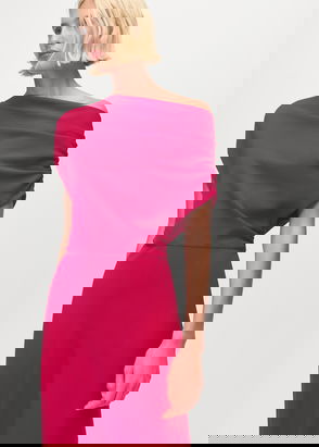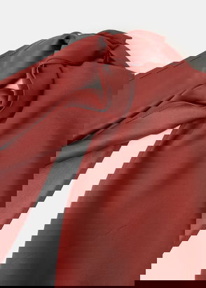 Asymmetric design, Tailored design, Combined design, Straight design, Short design, Asymmetrical neckline, Long sleeve, Bow on the waist, Side zipper closure.