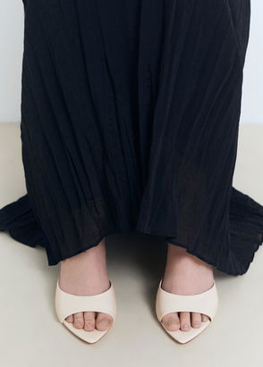 Patent leather effect, Asymmetric design, Side slit, Pointed, Stiletto heel, 10 cm heel, Party and events collection.