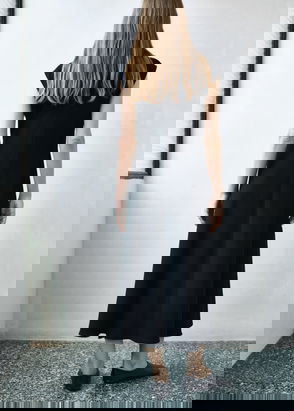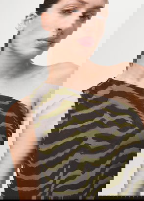 Flared design, Asymmetric design, Shiny finish, Short sleeve, Frill detail, Side length 42.32 in Back length 52.17 in.