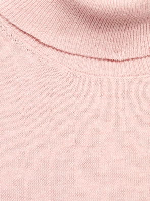 Thick knitted fabric, Cable knit finish, Cable stitch, Baby doll neck, Long sleeve, Dropped shoulder seams.