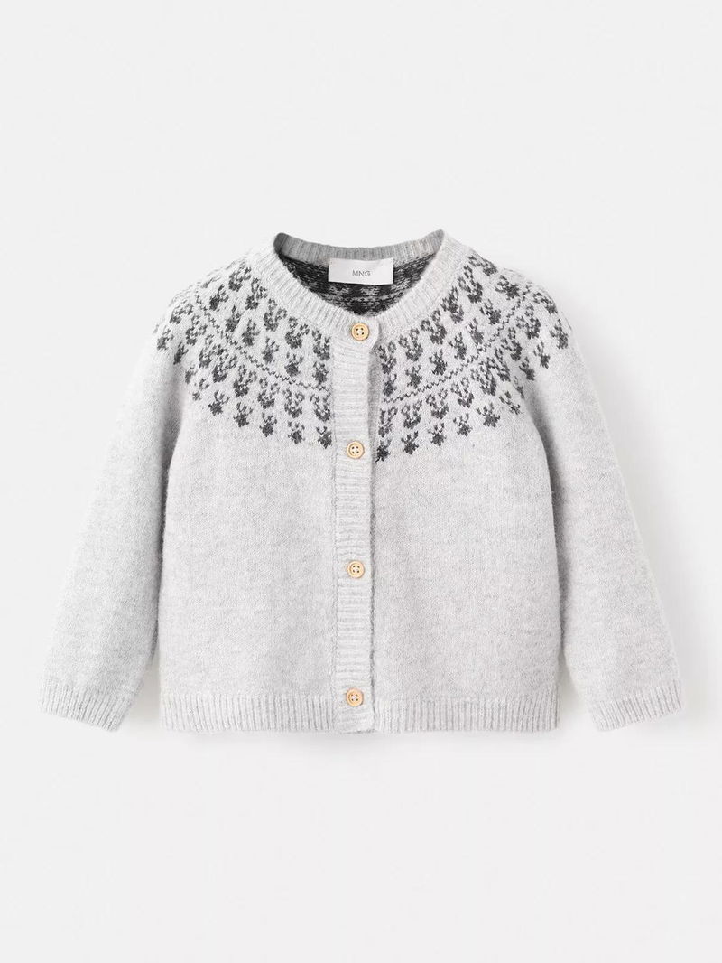 Baby Lisse Fair Isle Cardigan, Medium Grey