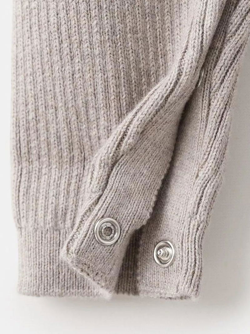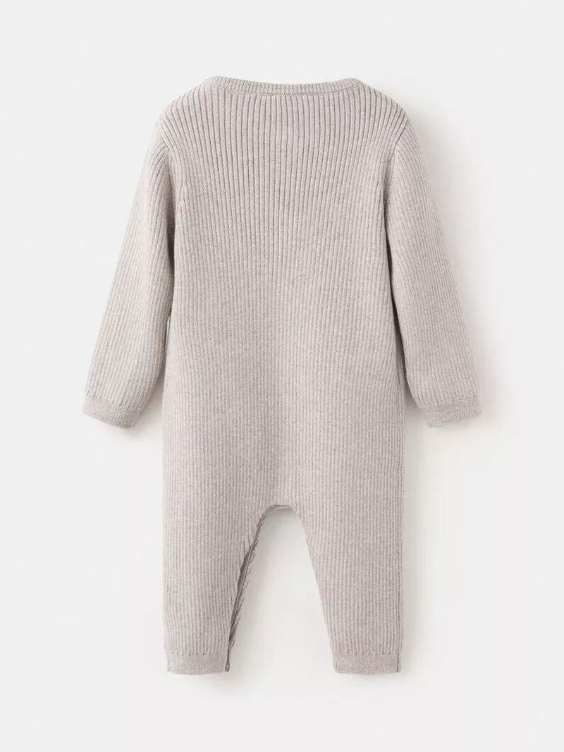 Baby Momo Knitted Bodysuit, Light Grey