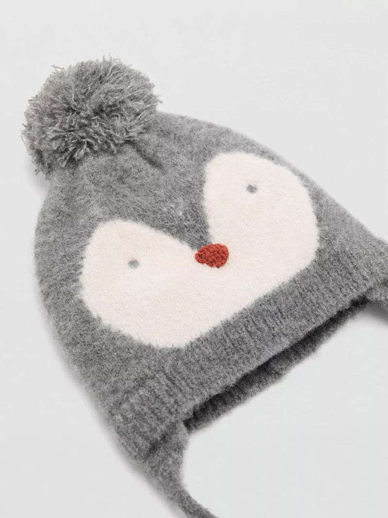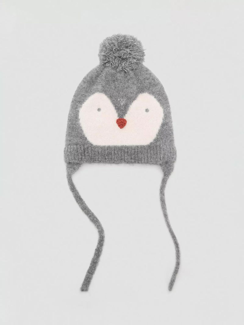 Baby Penguin Pom-Pom Trapper Hat, Grey