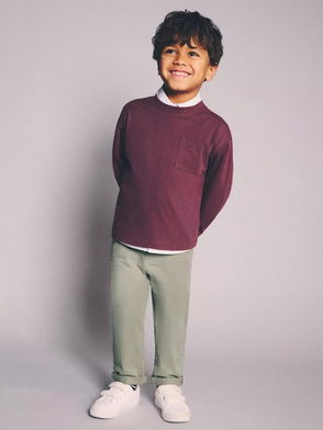Micro corduroy trousers made of soft cotton in a long and straight design. Completed with decorative buttons, a comfy elastic waist and without any fastenings for easy on/off.