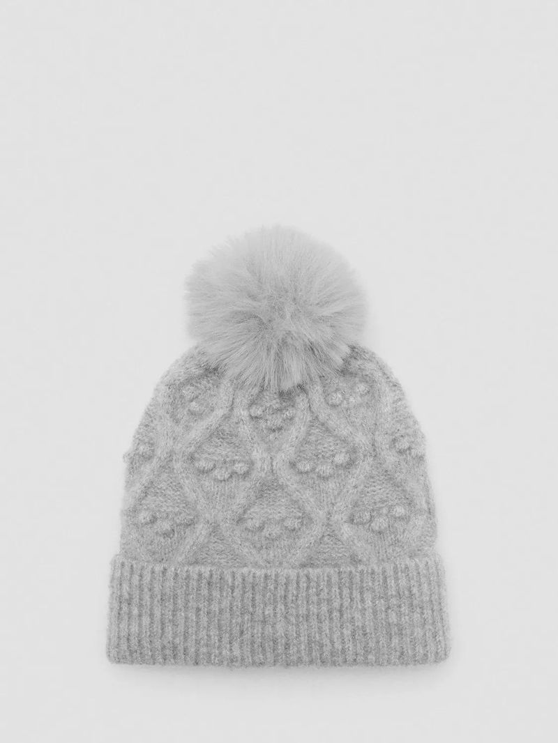 Baby Textured Bobble Hat, Grey
