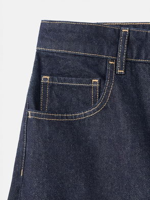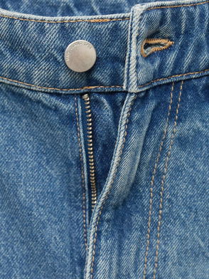 Denim-style cotton fabric. Long design. Balloon design. Strass design. Mid-rise. Belt loops. Five pockets. Button and zip fastening. Selection Collection. This garment is part of our party and event collection, designed to elevate your looks for special occasions.