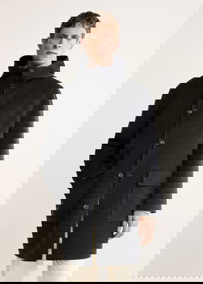 Fabric with wool, Handmade design, Oversize design, Medium design, Lapel-collar V-neck collar, Long sleeve, Two front pockets, Removable belt, Back-slit hem.