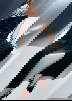 Committed Collection, Flowy fabric, Long design, V-neck, Short sleeve, Adjustable waist tie, Pleated details, Zip fastening on the back section.