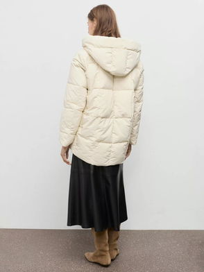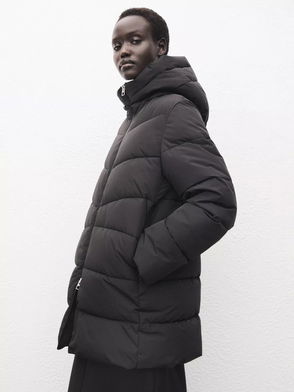 Quilted design, Midi design, Long sleeve, Adjustable belt, Inner lining, Two zipped pockets, Zip fastening on the front section.