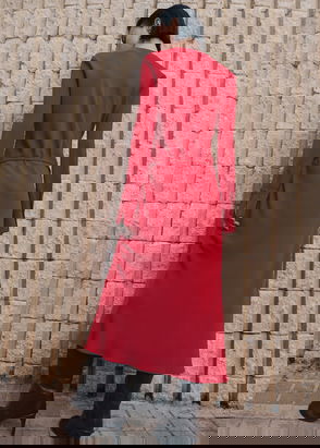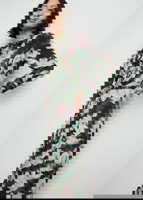 Soft fabric, Flared design, Classic collar, Long buttoned sleeve, Patch pocket on the front, Adjustable belt, Button fastening on the front section.