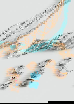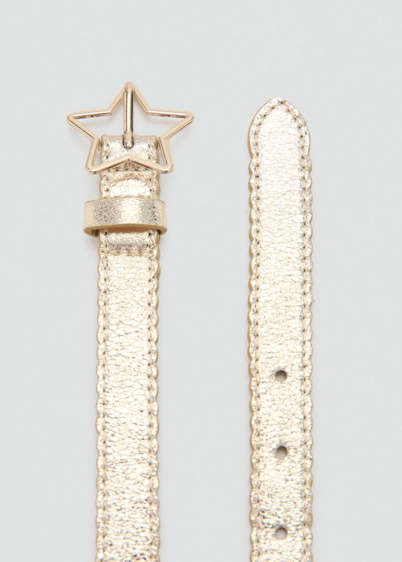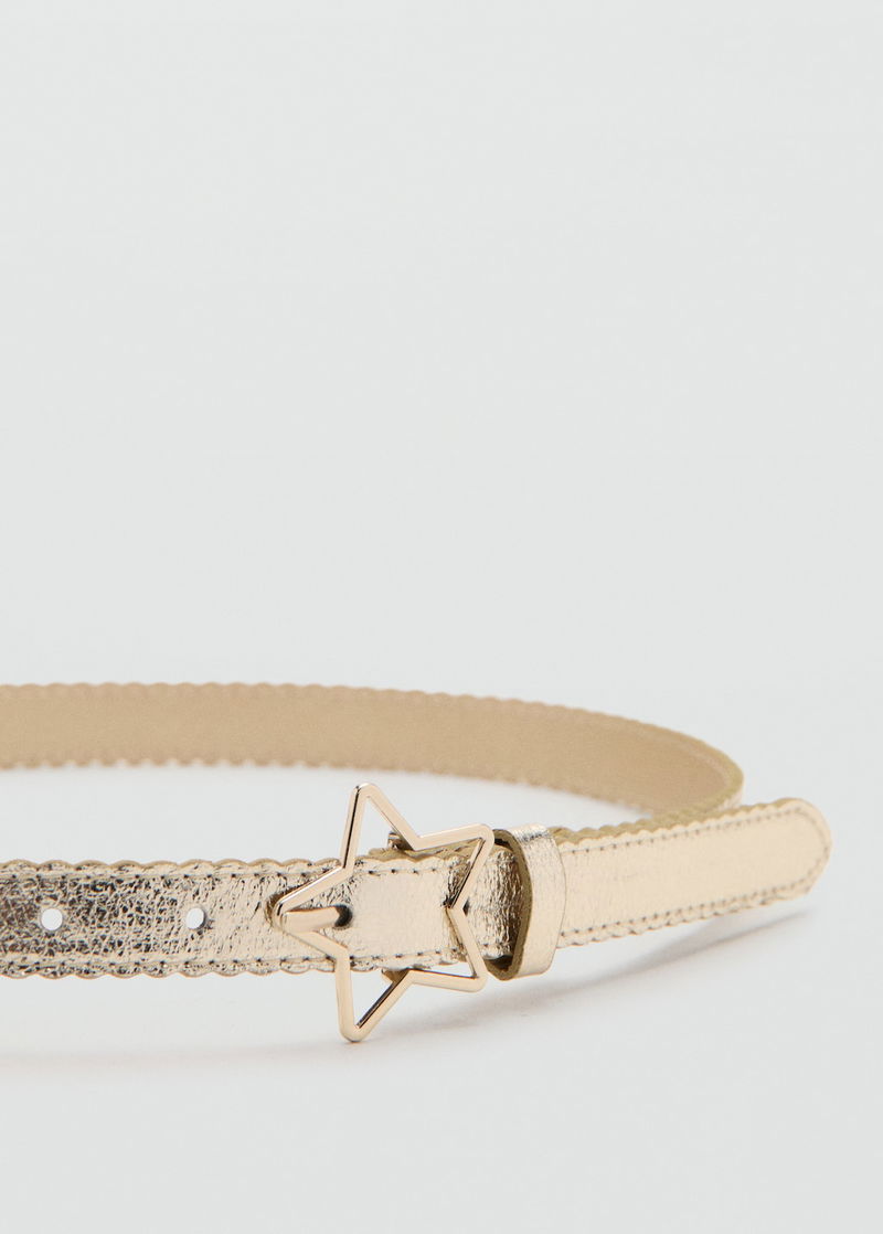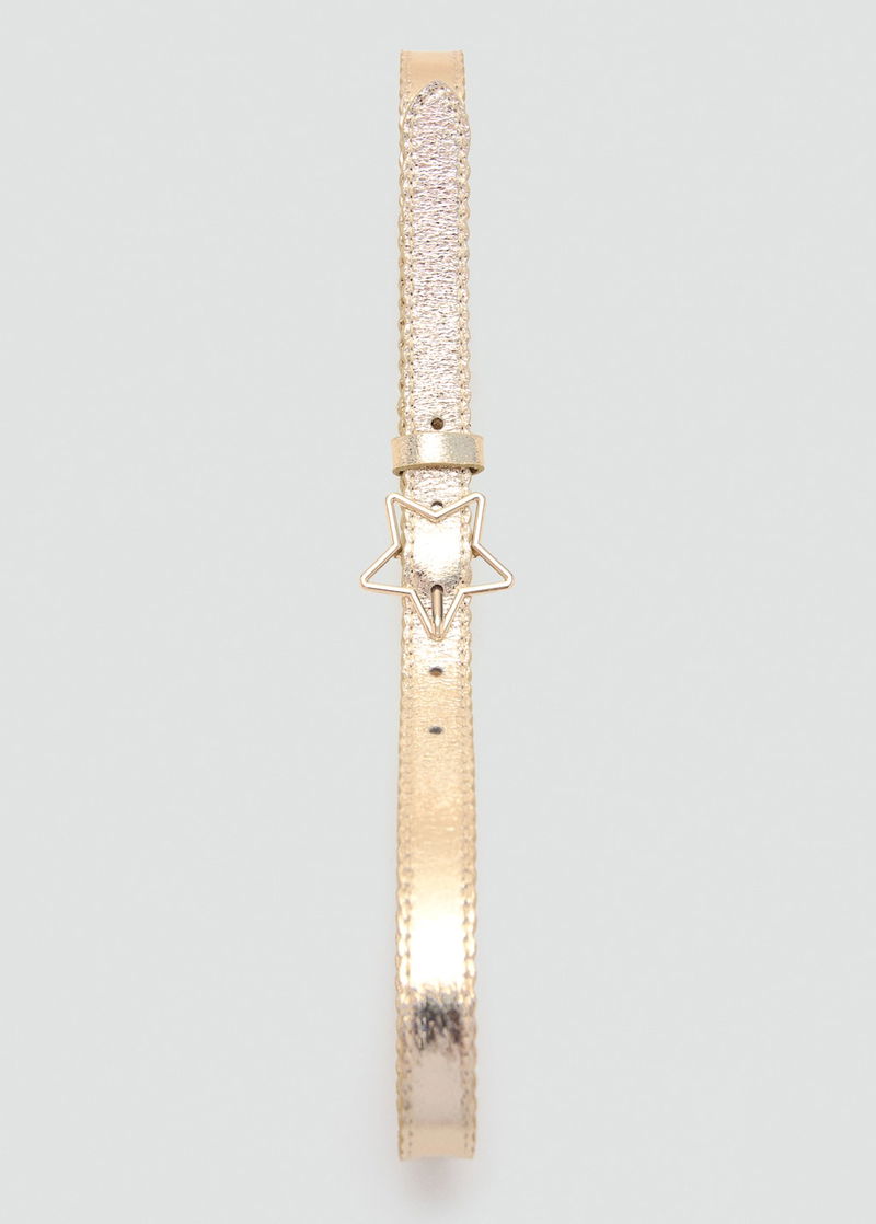 Slim design. Metallic. Star detail. Buckle closure. Single loop.
