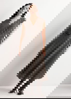Belted V-neck Dress