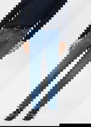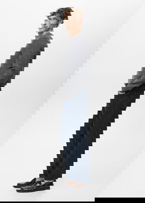 Tapered fit: wide cut at the top that narrows from the knee to the ankle, Cropped design, Sustainable cotton fabric, Garment dye, Loops, Zip and one button fastening, Five pockets.