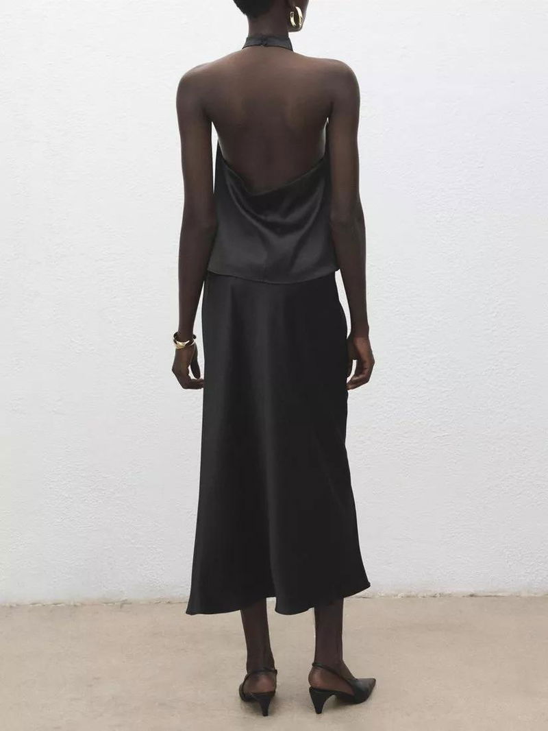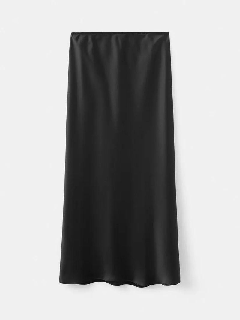 Bias Cut Midi Skirt, Black