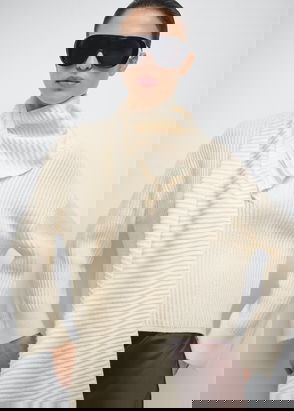 Embrace your softer side. High neck. Drop shoulders. Ribbed trims. Relaxed fit.