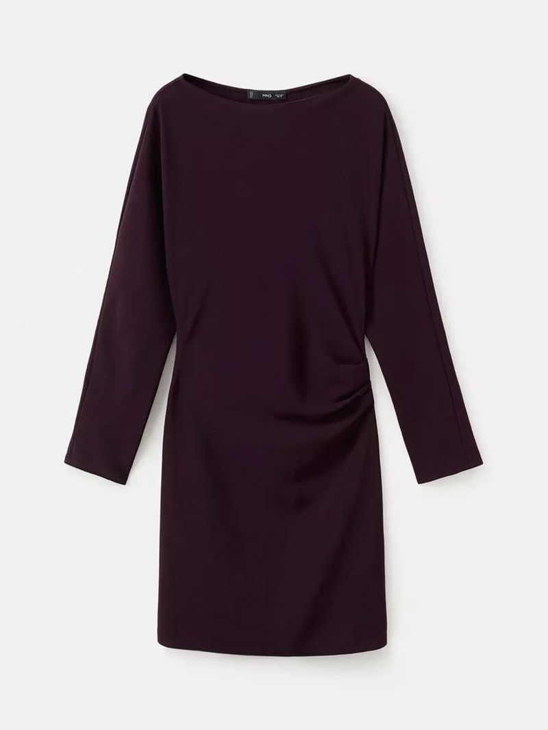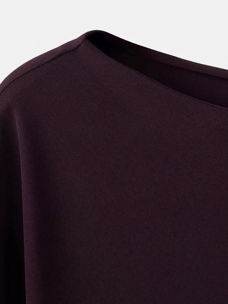 Boat Neck Long Sleeve Mini Shift Dress, Wine