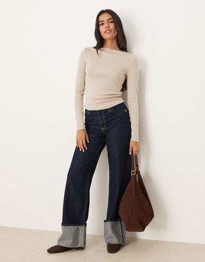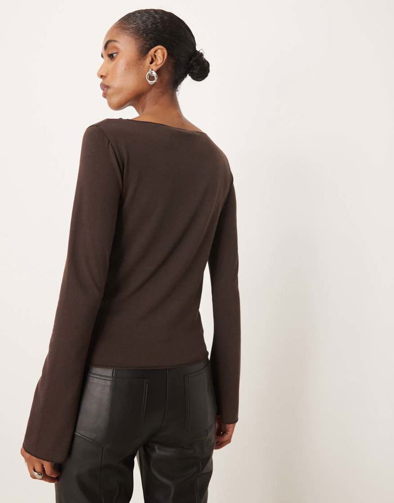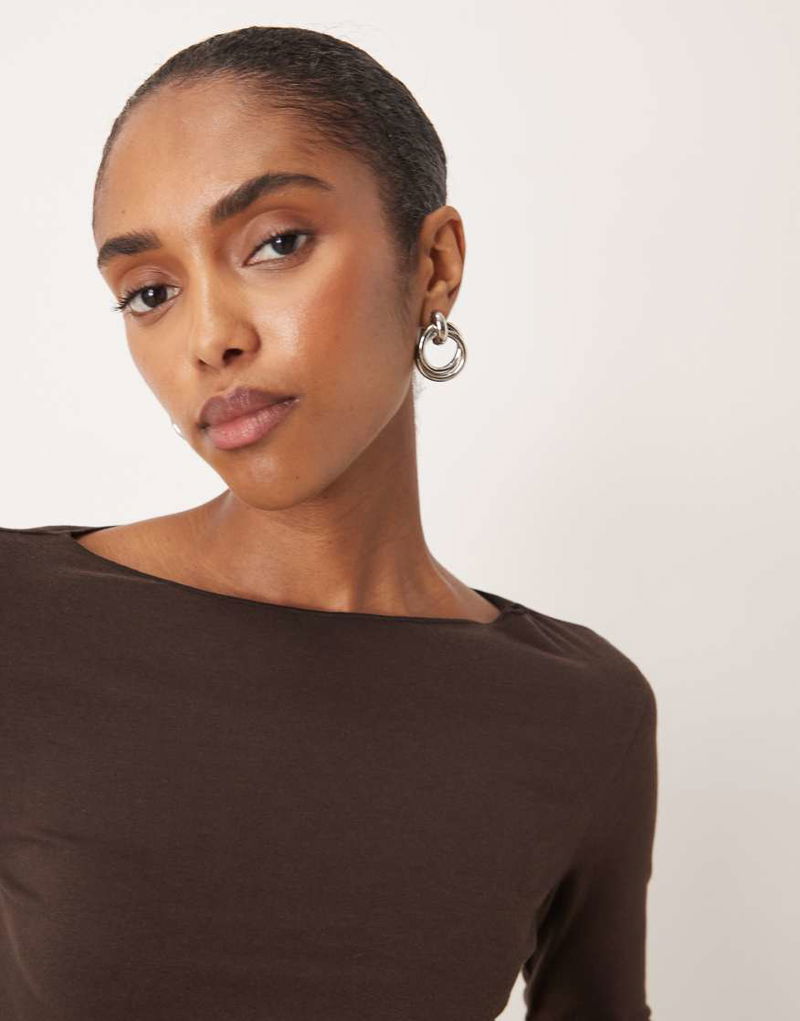 Boat Neck Long Sleeve Top In Brown