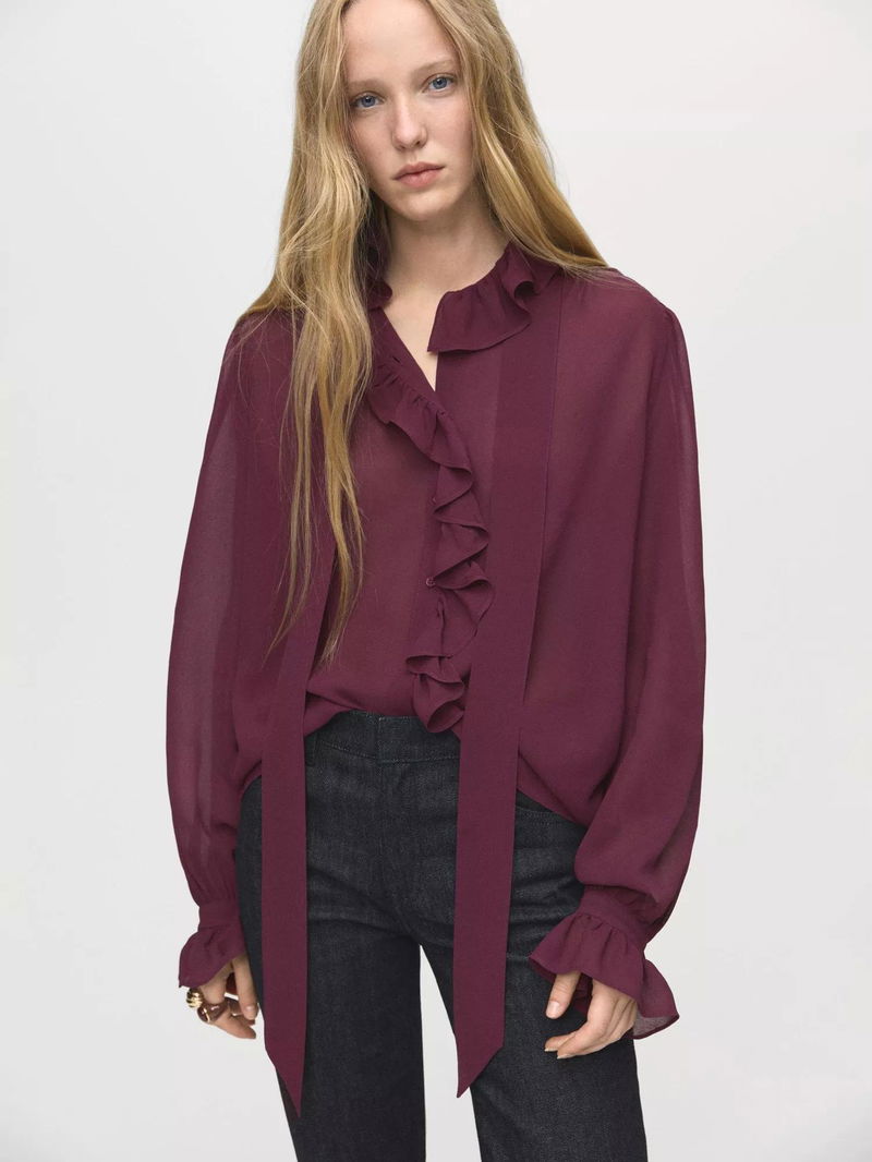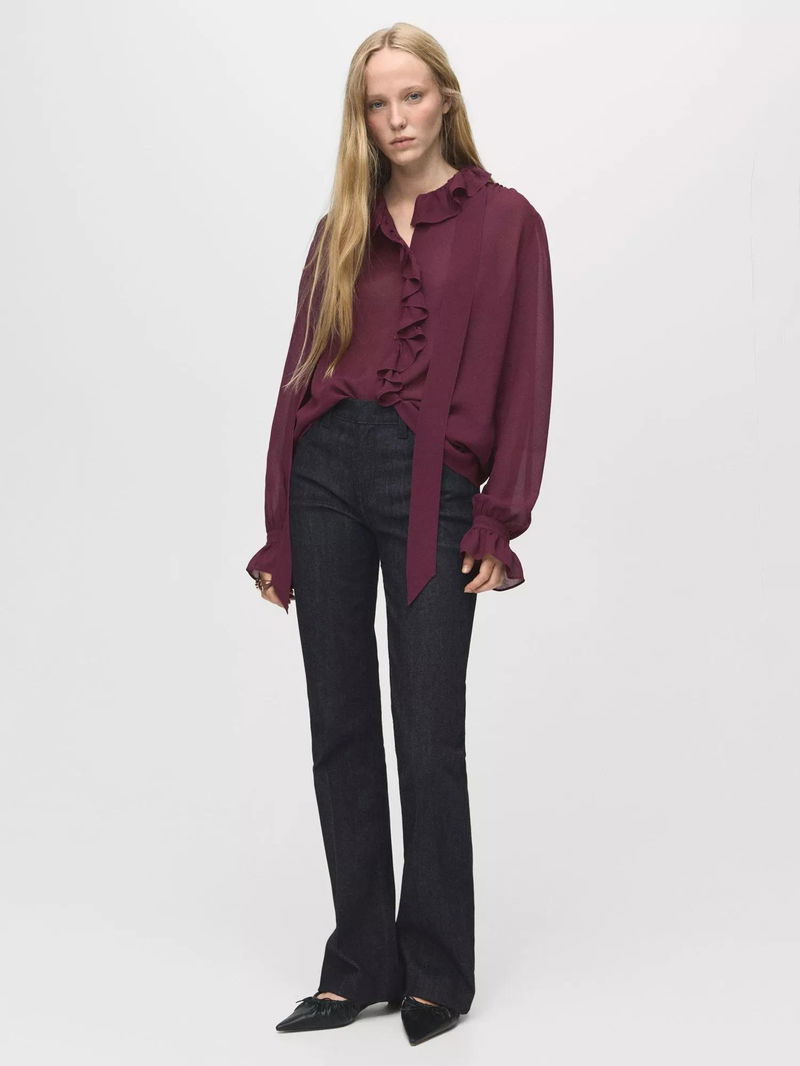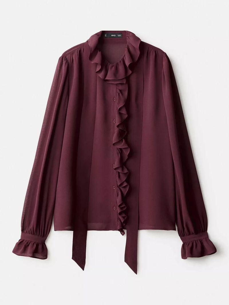 A ruffle blouse by Mango. With a scarf neck and long sleeves, the plain design means it goes with everything. A wear-everywhere essential.