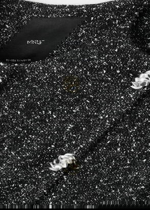 Bouclé fabric. Straight Design. Round neck. Long sleeve. Two side welt pockets. Front closure with buttons. Jewel-effect buttons. Inner lining.