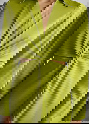 100% Cotton, Midi design, Flared design, Shirt-style collar, Three quarter sleeve with buttoned cuffs, Semi-transparent sleeves, Removable bow on the neck, Two chest pockets with flaps, Button fastening on the front section.