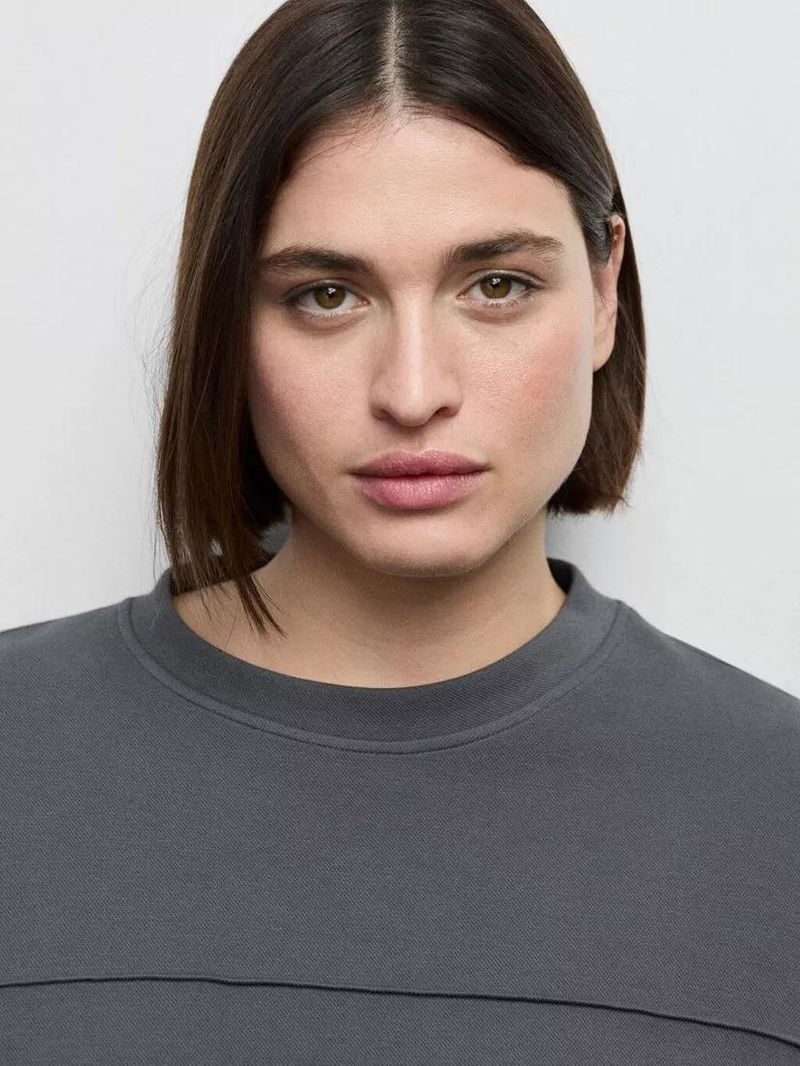 Boxy Ruched Sleeve Sweatshirt, Blue