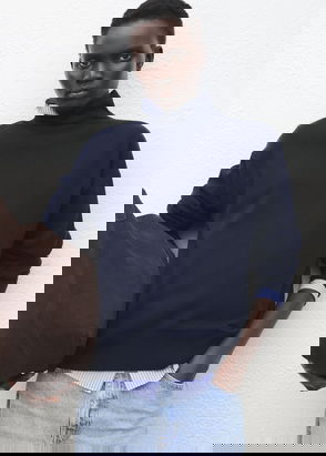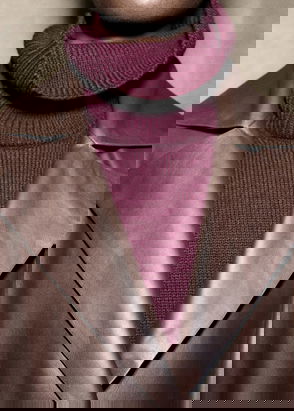 Fine knit fabric, Knitted braided fabric, Cashmere wool-blend fabric, Straight design, Rolled neck, Long sleeve, Cable knit finish.