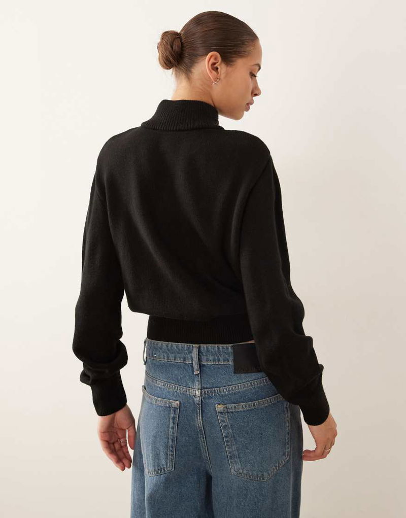 Button Detail High Neck Jumper In Black